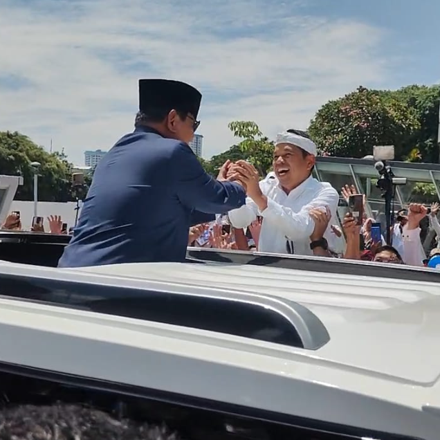 Sontak warga yang melihat pun langsung histeris dan meneriakkan dukungan juga semangat pada Prabowo yang akan menjalankan tugas sebagai presiden dan KDM yang saat ini tengah bertarung di Pilgub Jabar.